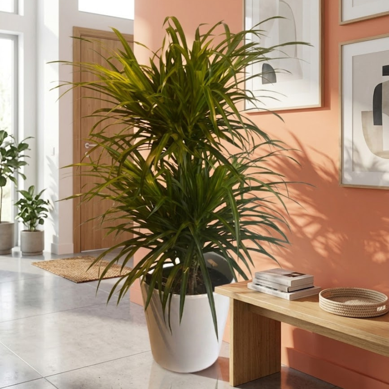 Niet alleen is deze plant een lust voor het oog, de Dracaena staat ook bekend om zijn luchtzuiverende kwaliteiten. Hij filtert onzuiverheden uit de lucht en zorgt voor een frisser leefklimaat in huis of op kantoor.