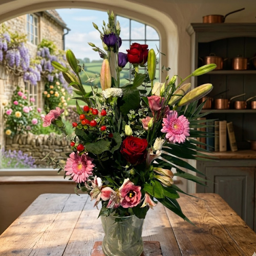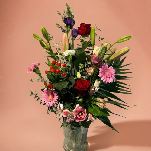 Ontdek de levendige pracht van “Fruitig”, een betoverend boeket dat één zijde siert met een speelse mix van roze en rood. Met een combinatie van rozen, anjers, lelies en lisianthus straalt dit arrangement vitaliteit uit. Perfect voor het vieren van vreugde en liefde bij elke gelegenheid. Bestel vandaag nog dit kleurrijke boeket en laat je ruimte opfleuren met zijn frisse en fruitige uitstraling.